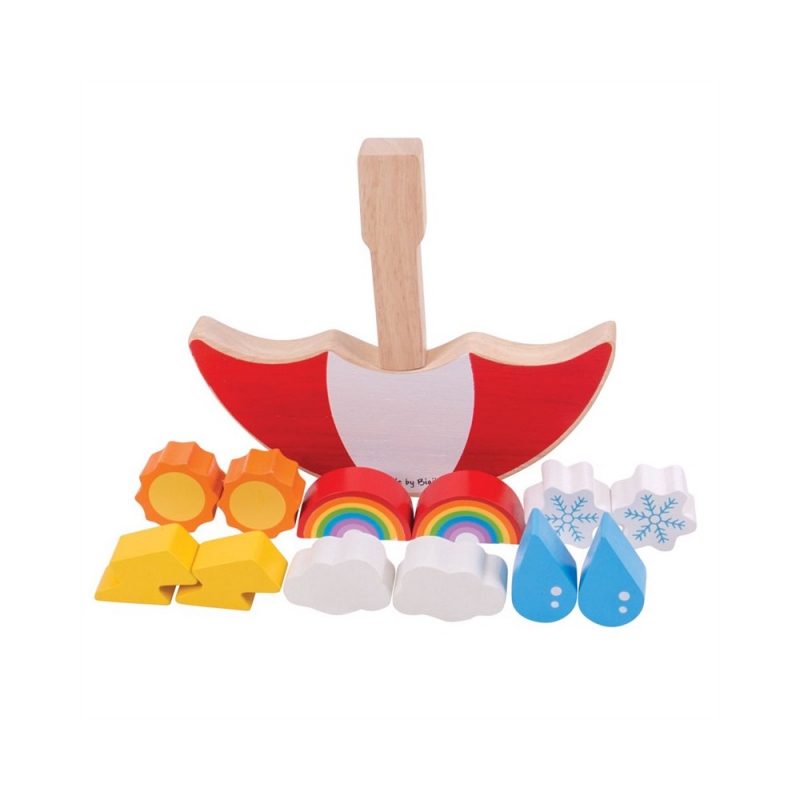 Jak vysoko můžete vyvážit různé dílky počasí? Jedná se o hru dovednosti a trpělivosti, která bude bavit celou rodinu! Hráči si musí střídavě brát po jednom kuse a skládat na deštník, aniž by ho převrhli. Poslední hráč, který úspěšně přidá kus vyhraje! Zahrnuje 6 symbolů počasí včetně duhy, oblačnosti, sněhové vločky, dešťové kapky, slunce a blesku. Rozvíjí koordinaci rukou a očí, jemné motorické dovednosti a zručnosti.