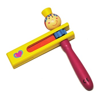Dřevěná řehtačka vydává řehtavý zvuk při otáčení kolem své osy. Řehtačka má pestrobarevné ztvárnění, aby se dětem líbila.