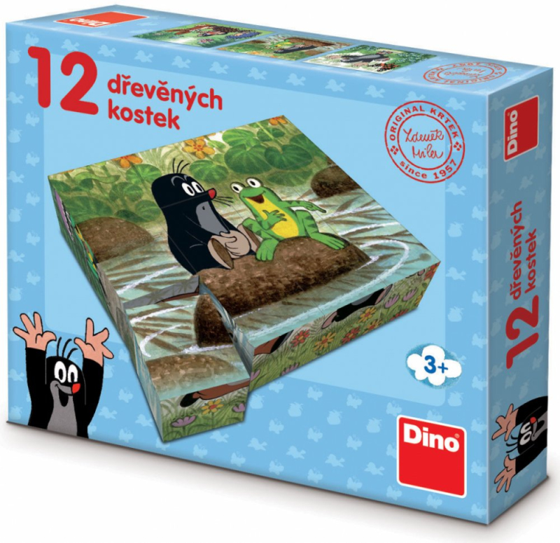 Děti si jistě zamilují tyto dřevěné kostky s oblíbeným Krtečkem. Sestavte si obrazy z 12ti dřevěných kostek, kdy každá stran kostičky vypráví jinou Krtečkovu příhodu, zaleží jen na Vás, jakou budete zrovna skládat. Skládání obrázků si ratolesti rozvíjí motoriku, představivost a tvůrčí myšlení.
