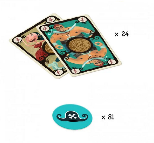 Obsah: 24 hracích karet, 1 žeton dealera a 80 žetonů „sázek“. Pravidla hry v 10 jazycích.