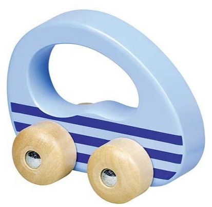 Drobné modré pruhované dřevěné autíčko pro chlapce má tvar, který se jim bude dobře držet v rukou. Výrobcem je firma Goki, ktera je zárukou precizního zpracování a kvalitních materiálů.
