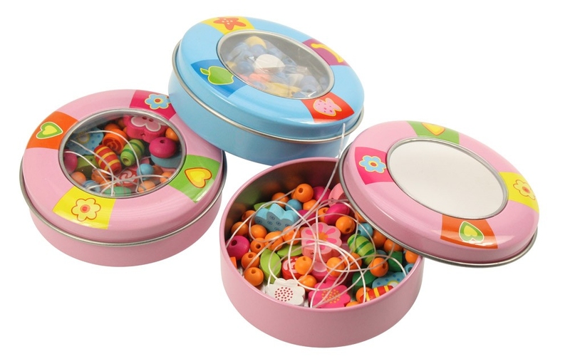 Sada pestrobarevných dřevěných korálků uchovaných v plechové krabičce se bude líbit každé dívce. Vyrobit si z nich může náhrdelník, náramek.