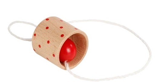 Bukové dřevo ozdobené top moderními vzory a barvami. Kdo zvládne napoprvé chytit kuličku do kalíšku? Dobře, když to nevyjde ihned, kdo potřebuje nejméně pokusů?