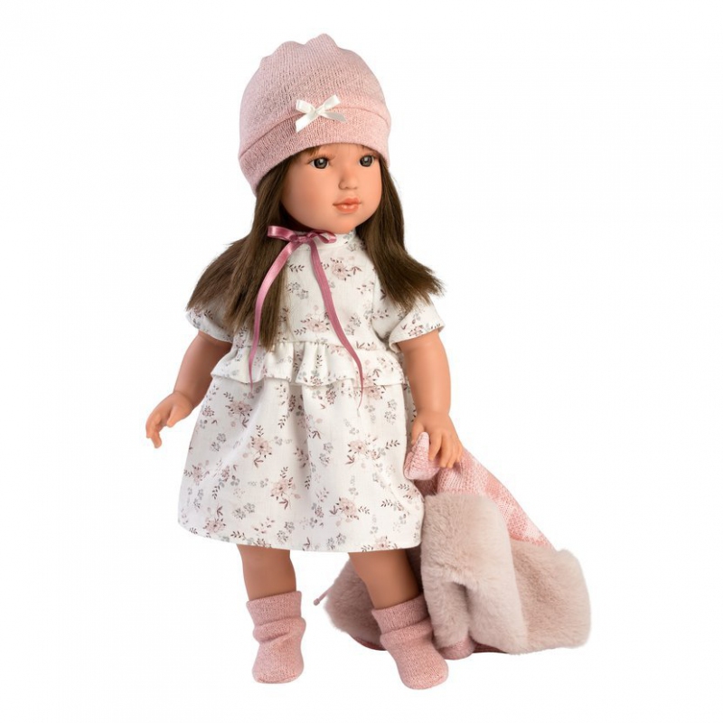 Panenka bez zvuku s měkkým látkovým tělem a s vlásky po celé hlavě, podobající se malé slečně.