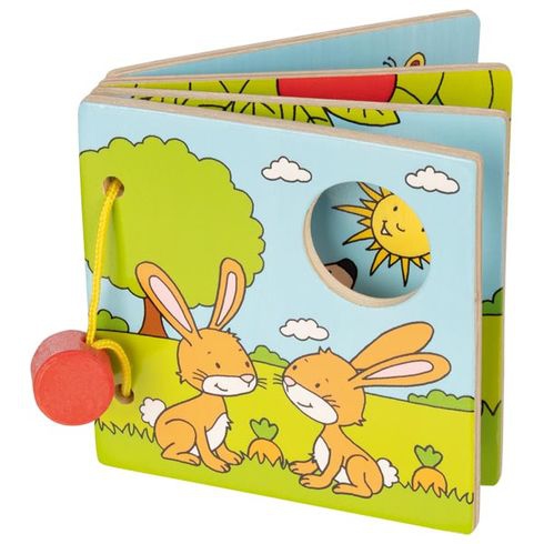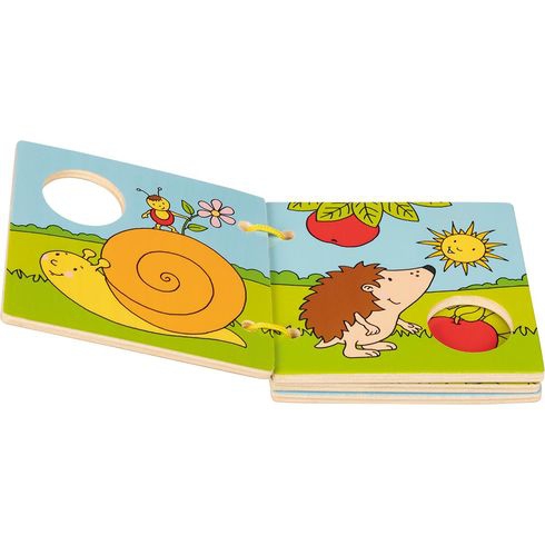 Veselá obrázková knížka ze dřeva s kvalitním potiskem naučí nejmenší děti rozpoznávat svět kolem nich. Kniha se jim bude dobře držet v ruce a dřevěné listy snadno otáčet.