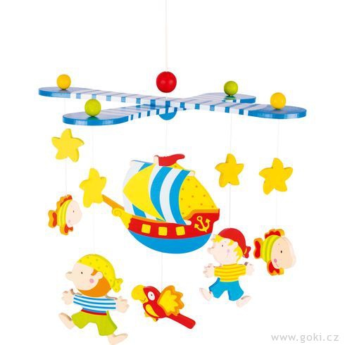 Krásné mobile pro malého piráta či pirátskou holčičku se pohybuje již při malém záchvěvu vzduchu. Závěsný kolotoč do dětského pokoje potěší miminka i malé děti při usínání a ozdobí dětský pokojíček.