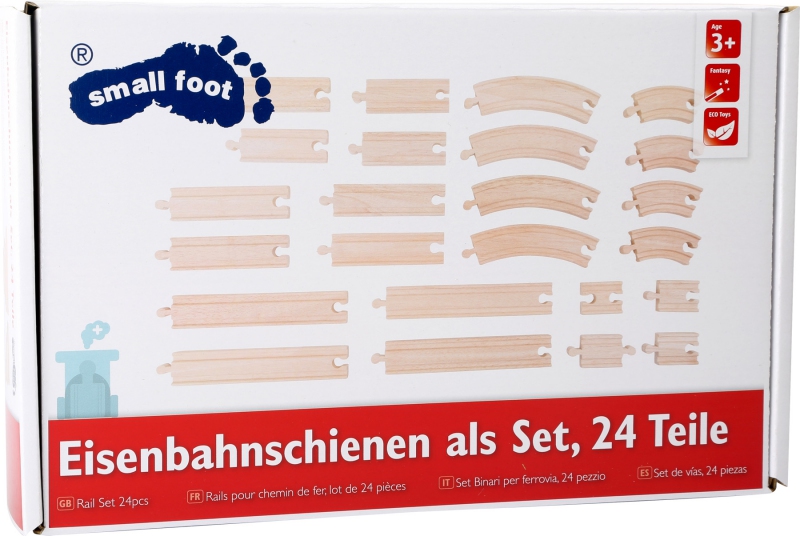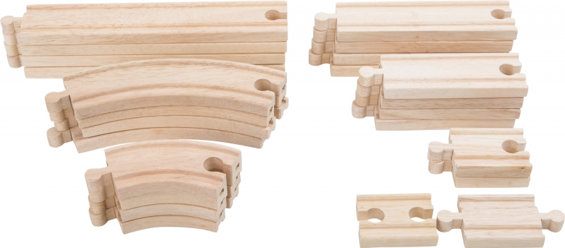 Velká sada dřevěných kolejí v řadě velikostí dá dohromady celý okruh. Sada je skvělým doplňkem k rozšíření stávajících vlačkodráh, je kompatibilní s ostatními výrobci.