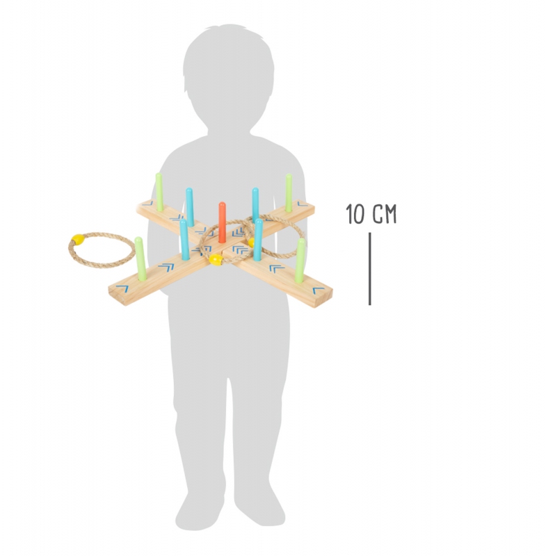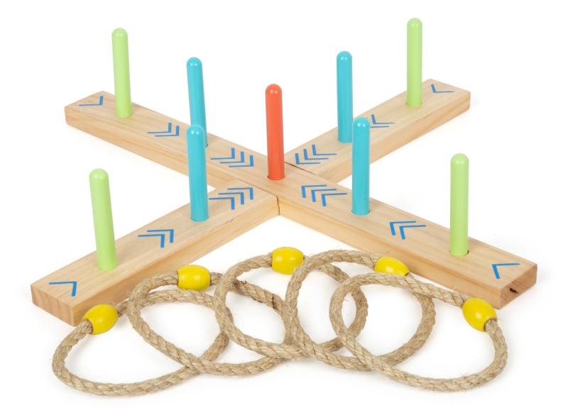 Pohyb, zábava, trpělivost, zručnost a soustředění – to je hra házení kroužků na cíl. Hra je vyrobena ze dřeva a sisalu a je rozkládací, takže se vejde do batohu při cestách do přírody. Můžete ji hrát ale také v interiéru s dětmi i dospělými.