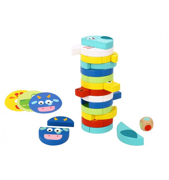 Jenga může hrát celá rodina! Zjednodušená verze klasické hry Jenga od Tooky Toy se zvířátky zaujme děti i dospělé. Děti v této balanční hře najdou místo klasických kvádrů hlavičky zvířátek, vždy rozdělené na tři části. Postavíte z nich věž, hodíte kostkou a můžete začít s vytahováním správných barevných dílků tak, aby věž nespadla.