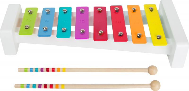 Rozvíjejte hudební talent svých dětí s krásným dřevěným xylofonem v bílé barvě doplněného o zářivé barvy kláves. Součástí balení jsou dvě dřevěné paličky.